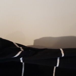 This black with thin white horizontal stripes polo shirt is in good condition. No rips, tears or stains. See photos for condition and measurements.