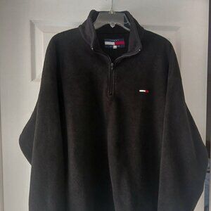 Tommy Hilfiger Mens Pullover Sweater 1/4 Zipper Fleece Collar Size Large Black