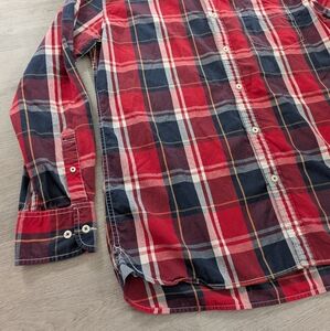 Tommy Hilfiger Men's Red and Navy Blue Plaid Shirt Size XL