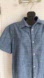 Men’ s short sleeved denim blue button down shirt in 100% Cotton, soft to the touch no stretch. Size Large