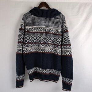 Tommy Hilfiger Men's Sweater Navy/Cream/Red Knit Wool Diamond Pattern, Large