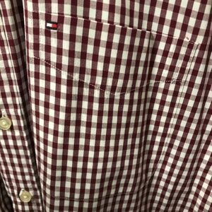Tommy Hilfiger Mens XXL Burgundy Checked Button Down Long Sleeve Shirt