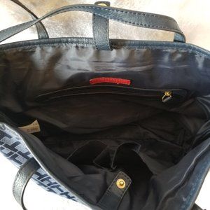 In excellent gently used, like new condition. Open top with snap closure. Navy blue satin lining.Interior very clean with no rips stain or tears noted in lining.