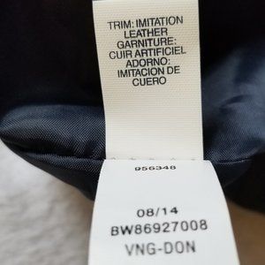 Interior has one zipped slip pocket and two open slip pockets. Zippers good. Faux vegan leather. Gold tone Hardware in good condition. Bottom condition very good