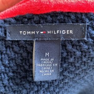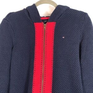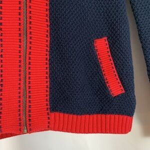 Tommy Hilfiger Navy Blue & Red Knit Zipper Sweater