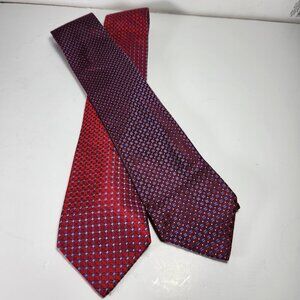 Tommy Hilfiger Necktie Mens 100% Silk Tie Squares and Dots Lot of 2 Red Burgundy