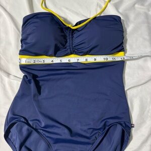 Tommy Hilfiger One Piece Bathing Suit Navy Blue with Yellow Stripe Size 8