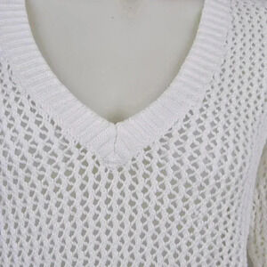 Tommy Hilfiger Open Knit Sweater White V-Neck Sheer