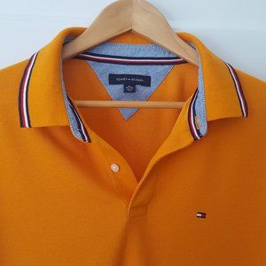 Excellent condition, never worn Tommy Hilfiger Polo in a subdued orange color. Regular fit it sits comfortable. Bought for my husband last year but he did not like the color. Perfect color for summer months and well into the autumn season.