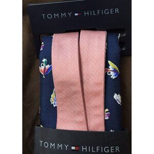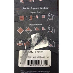 100% Silk Tommy Hilfiger matching pocket square and classic bow tie in the Oxford and Fly (fishing) pattern.