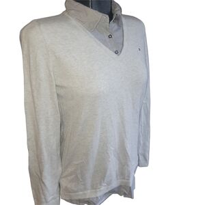 Tommy Hilfiger Pale Gray V-Neck Sweater with Faux Attached Shirt M