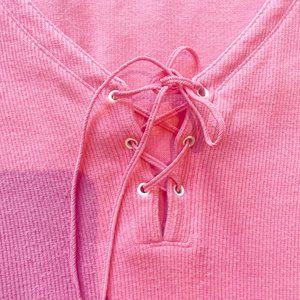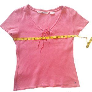 Tommy Hilfiger Pink Ribbed V Neck Lace T-Shirt Sz L