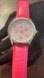 Stylish watch with a pink strap. Silver stainless steel case. Ideal for daily wear.