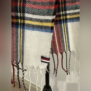Tommy Hilfiger Plaid Fringe Scarf in Red, Blue, and White One Size Unisex
