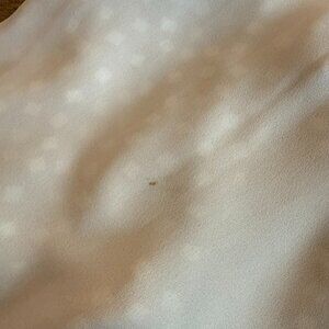 I've added two pictures to this listing because I turned the dress completely inside out and noted two small marks that did not come clean with a gentle hand wash. See pictures 9 and 10. Neither mark shows through the lining of the dress (at all). I would still say that this dress is in excellent used condition. It did and will look beautiful on.