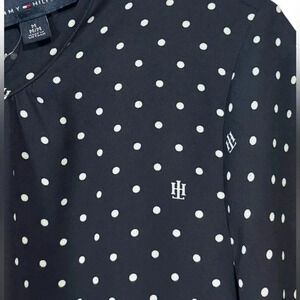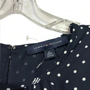 Tommy Hilfiger, Polka-Dot Gathered Neckline Balloon Sleeve Blouse, Med, Navy