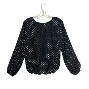 Elevate your style with this chic polka-dot blouse featuring a gathered neckline and elastic cuffs that create a subtle balloon sleeve effect. Its relaxed fit and classic color palette make it a versatile addition to any wardrobe, perfect for casual outings or smart-casual events. Navy & White / New π·οΈ / π