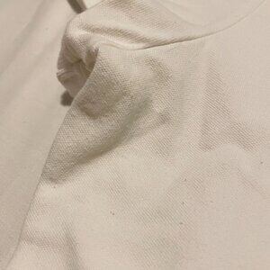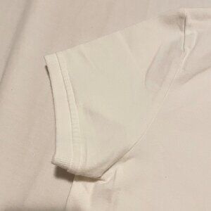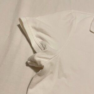 This shirt is pre-owned and in used condition. There are some loose threads and pilling on it. The care tag is cut. There is some discolouration from use. Please see all photos for exact item. The length from top of shoulder to bottom is about 23" Pit to pit is about 18" when measured laying flat