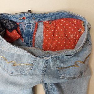Tommy Hilfiger Light Blue Washed and Whiskered Jeans with Gold Sequin Accents