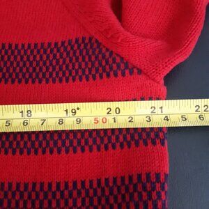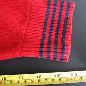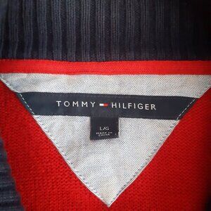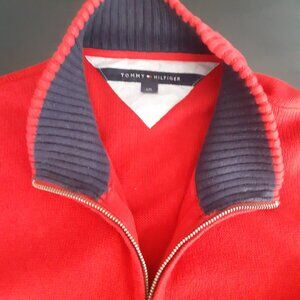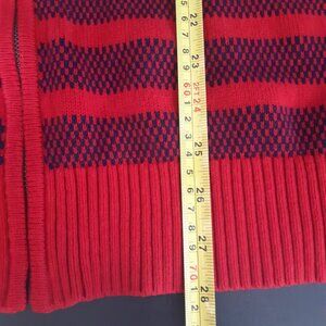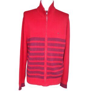 Tommy Hilfiger SZ L Red Full Zip Cotton Mock Turtleneck Cardigan w/ Navy Stripes