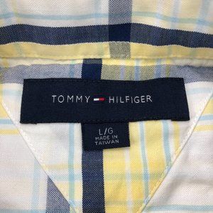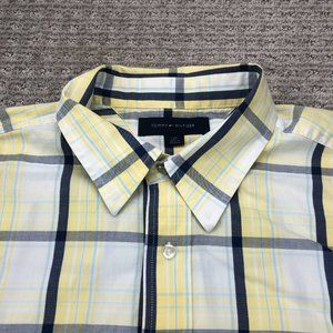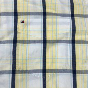 Tommy Hilfiger Shirt Men Large L Yellow White Blue Plaid Button Up Casual Pocket