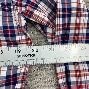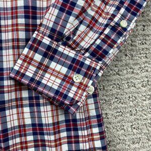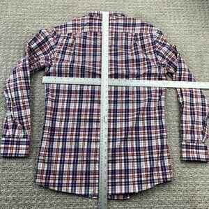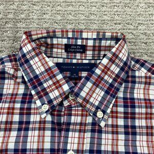 Tommy Hilfiger Shirt Men Size 15 32-33 Slim Fit Blue Red White Plaid Button Down
