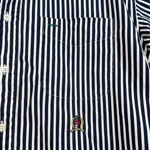 Tommy Hilfiger Short Sleeve Button Down Shirt Navy White Stripe Men L VINTAGE