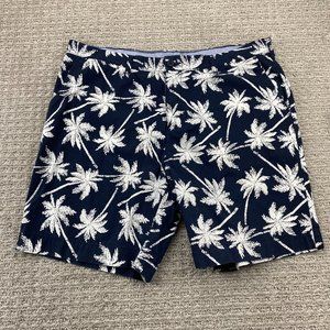 Tommy Hilfiger Shorts Men 40 Navy Blue Chino Short Pants All Over Palm Trees