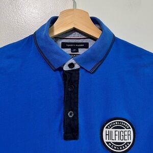Tommy Hilfiger Slim Fit Blue Polo Shirt with Patch Logo - Size Small