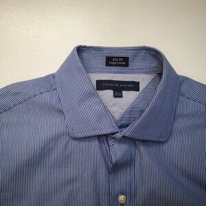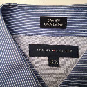 Tommy Hilfiger Slim Fit Men's Size 15 1/2 Button Front Blue w/ Pin Stripes Shirt