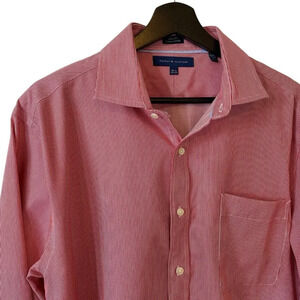 Tommy Hilfiger Slim Fit Red and White PinStriped Button Down 16.5 neck