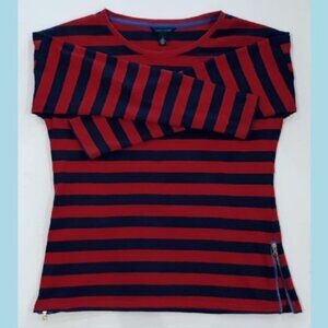 Tommy Hilfiger Striped Sweater Side Zipper Red Navy Preppy Womens Size Medium