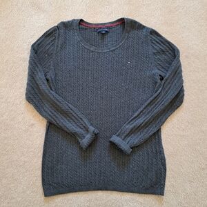 Tommy Hilfiger Sweater Grey Cable Knit Crewneck Size XL Long Sleeved Classic