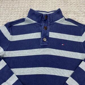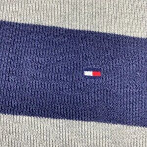 Tommy Hilfiger Sweater Men Medium M Navy Blue Gray Stripe Knit 1/4 Button Casual