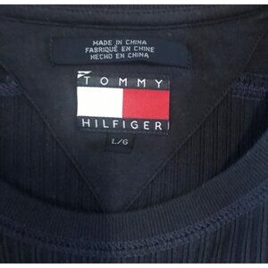 Tommy Hilfiger Sweater Ribbed Long Sleeve Crew Neck L/G Navy Blue Cotton Vintge