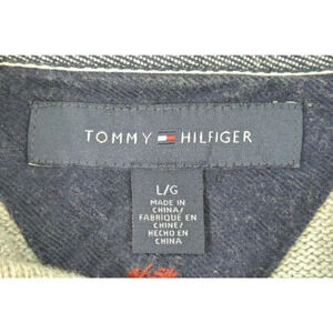 A gray Tommy Hilfiger sweater in very good condition. The size is Large. Approx. measurements include: