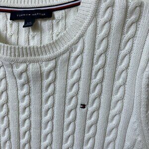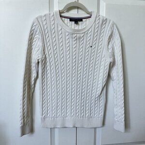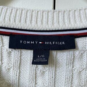 Tommy Hilfiger Sweater Womens L White Cable Knit Fisherman Academia Preppy