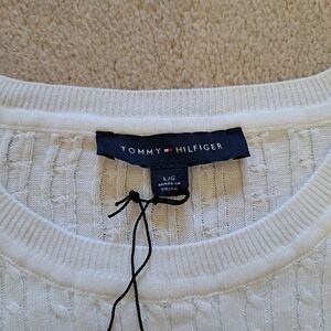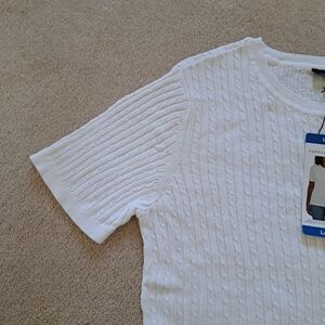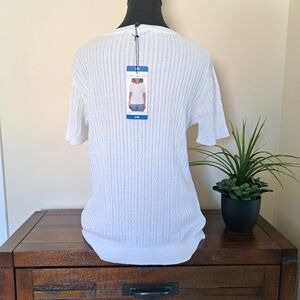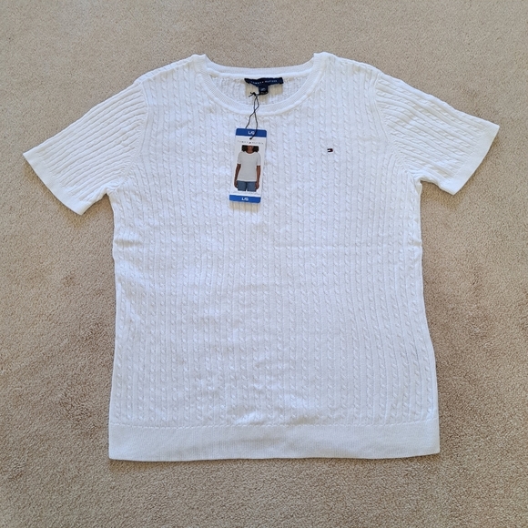 Tommy Hilfiger Sweater Women's Size Large White Cable Knit Short Sleeved NWT