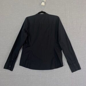 Tommy Hilfiger Top Womens Large Black Button Up Dress Shirt Ruffled Yoke