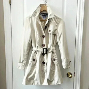 Tommy Hilfiger Trench Coat Jacket Light Beige Tan Neutral Belted Size Small