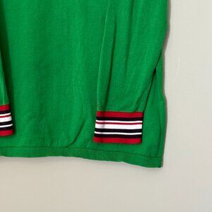 Tommy Hilfiger V-Neck Long Sleeve Cotton Sweater Green with Stripes XL