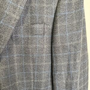 Tommy Hilfiger Vintage Grey Plaid Windowpane Wool Blazer Size 42T