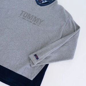 Tommy Hilfiger Vintage Y2K Blue & Grey V-Neck Sweater ~XLarge