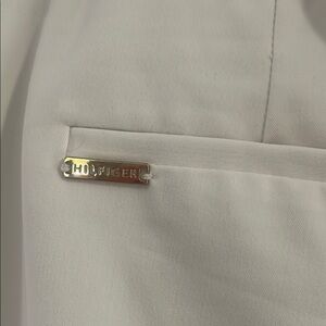 These stylish white pants from Tommy Hilfiger feature a flattering boot cut and flare design, perfect for adding a touch of elegance to your wardrobe. Crafted from a crisp, structured fabric, they offer a tailored fit through the hip and thigh, making them ideal for both business and smart casual occasions. 46 cm waist, 92 cm length. Size 12