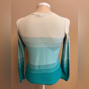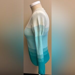 Tommy Hilfiger White & Fiji water Teal Striped V-Neck pullover Sweater Medium