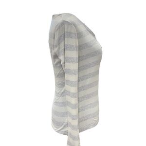 Tommy Hilfiger White & Grey Striped Long Sleeve Vintage Shirt