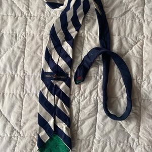 Tommy Hilfiger White Navy Striped 100% Silk Tie