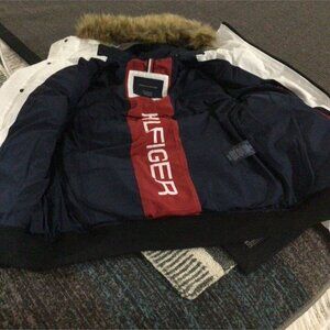 Tommy Hilfiger men's Arctic Cloth quilted snorkel bomber parka jacket in white, size medium. New without tags.