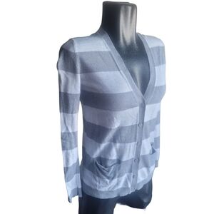 Tommy Hilfiger White and Gray Striped Cardigan XS