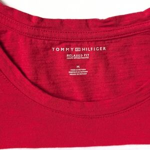 Stylish short sleeve tee. Features bold Tommy Hilfiger logo and clock block design in bright red, navy and white. Comfortable with its relaxed fit design.